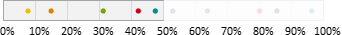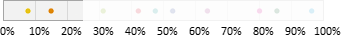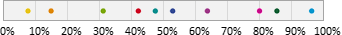 Auswahl-Wahrscheinlichkeit in ProzentGeben Sie einen Prozentwert zwischen 0 und 100% ein. Mit dieser Wahrscheinlichkeit gehört ein Abonnent zur Zielgruppe. Beispielsweise bewirkt ein Wert von 25%, dass ungefähr (siehe Hinweis) ein Viertel aller Abonnenten zur Zielgruppe gehören. Dazu verteilt bauchtreffer.ch alle Abonnenten auf einem Zahlenstrahl zwischen 0 und 100%. Bei 10 "bunten" Abonnenten könnte eine Variante so aussehen: